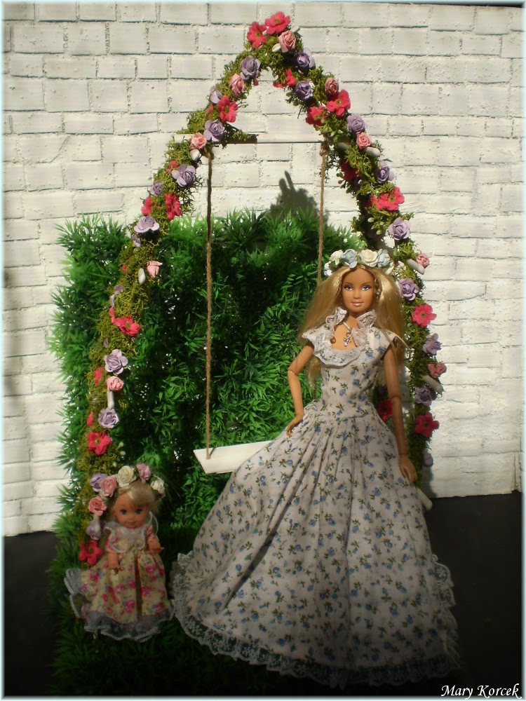 Výber tej správnej "matky" sme si zúžili na čiernovlásku alebo blondínu, lebo k bielym kvetinovým šatám sa nám tieto typy zdali najlepšie. Deti - Shelly máme vo všetkých vlasových variantách. Čiernovlasé bábiky máme len tri, ja som rozhodla, že podľa mňa je predsa len romantickejšia blondína ako čiernovláska.